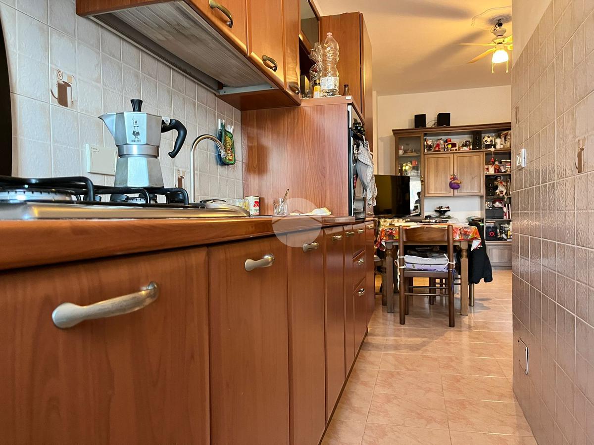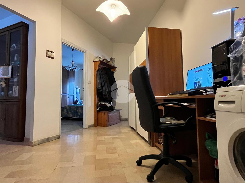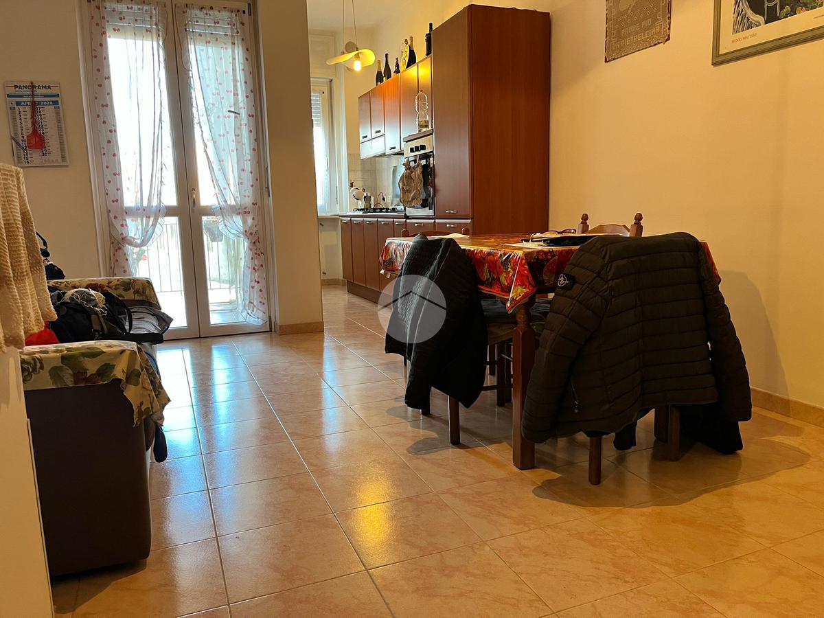 Dal portoncino blindato si accede a un generoso disimpegno che porta alla zona giorno composta da tinello con cucinino con affaccio al balcone.