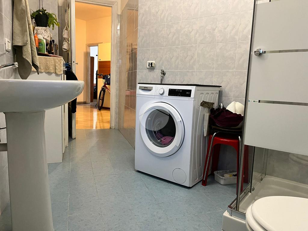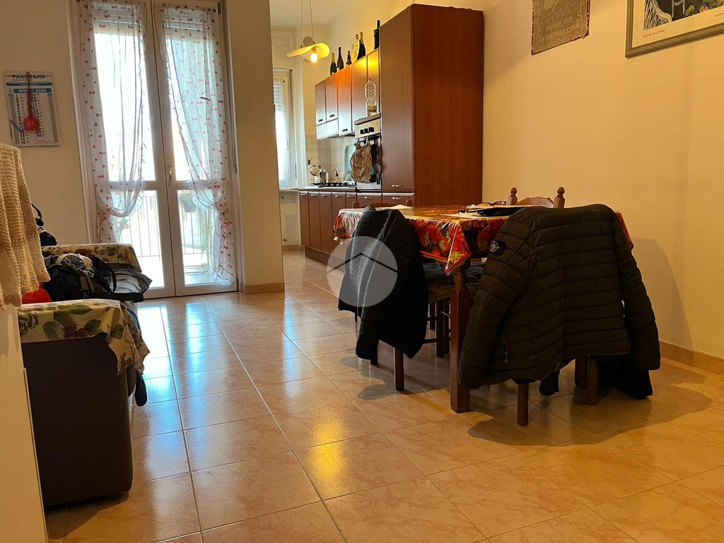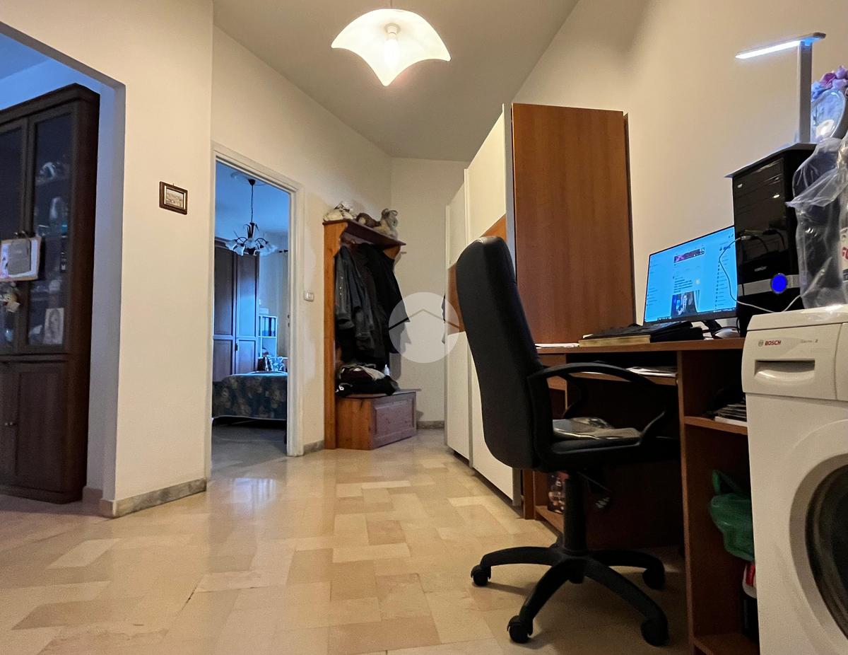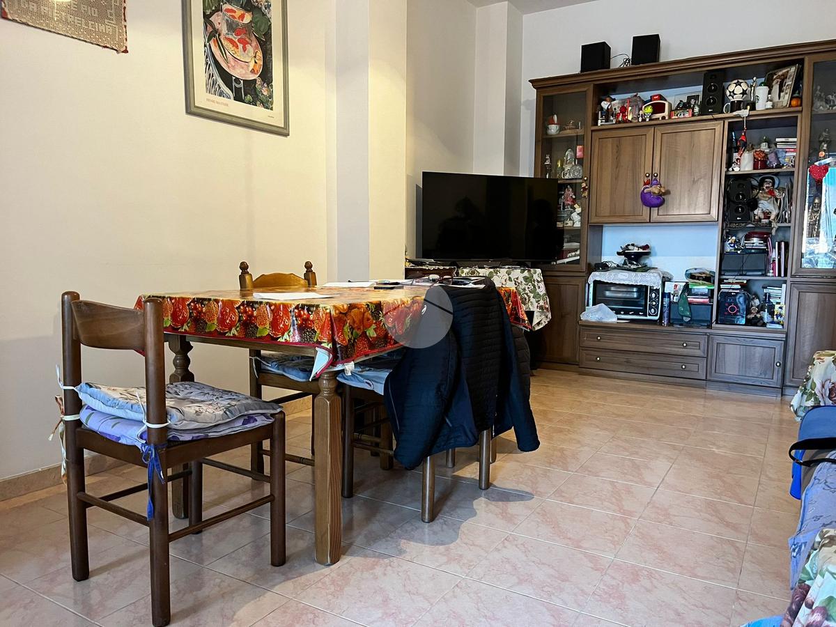 Dal portoncino blindato si accede a un generoso disimpegno che porta alla zona giorno composta da tinello con cucinino con affaccio al balcone.