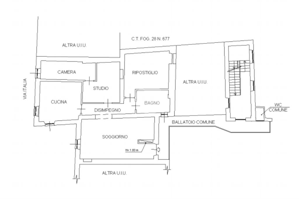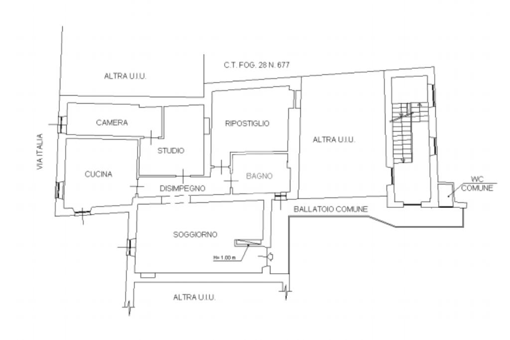 L'immobile si apre su un ballatoio, offrendo un accesso riservato e caratteristico.
