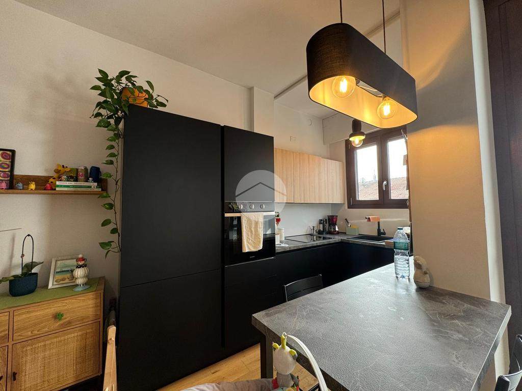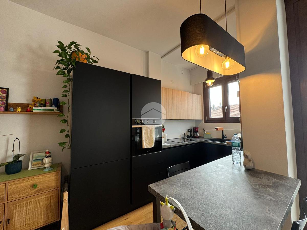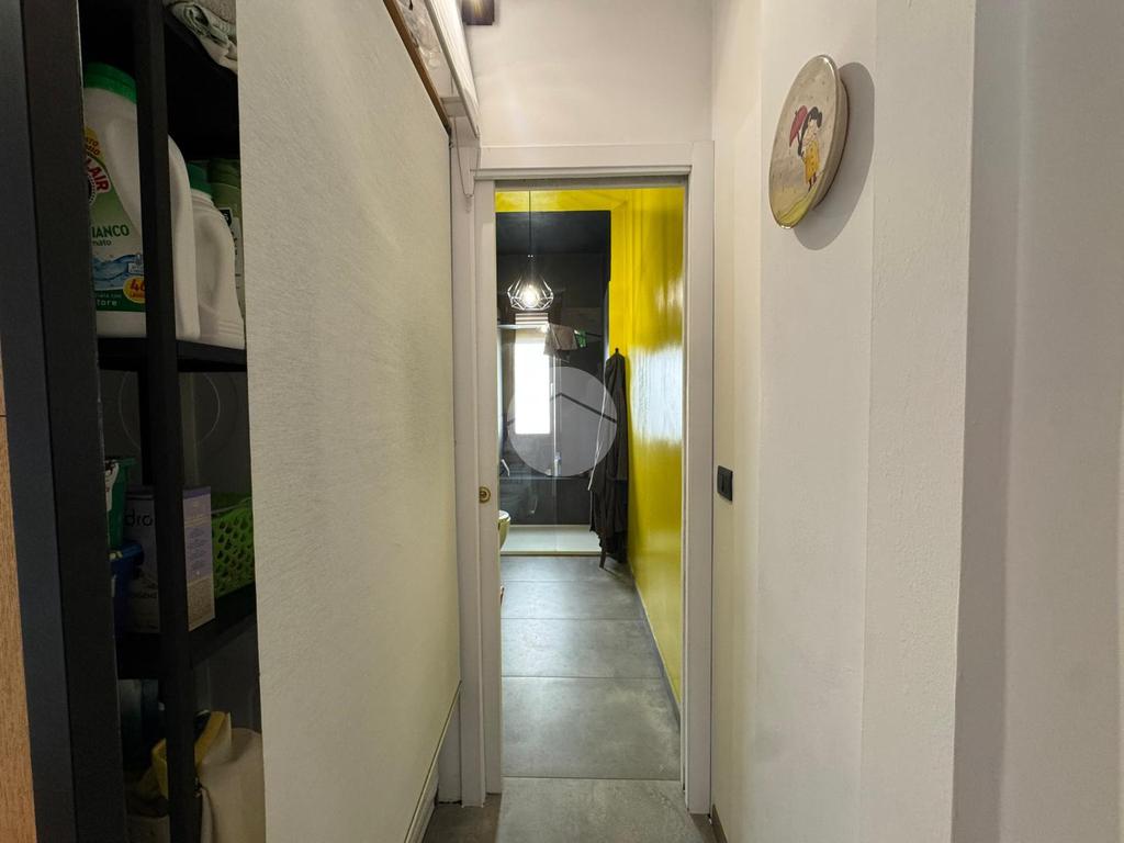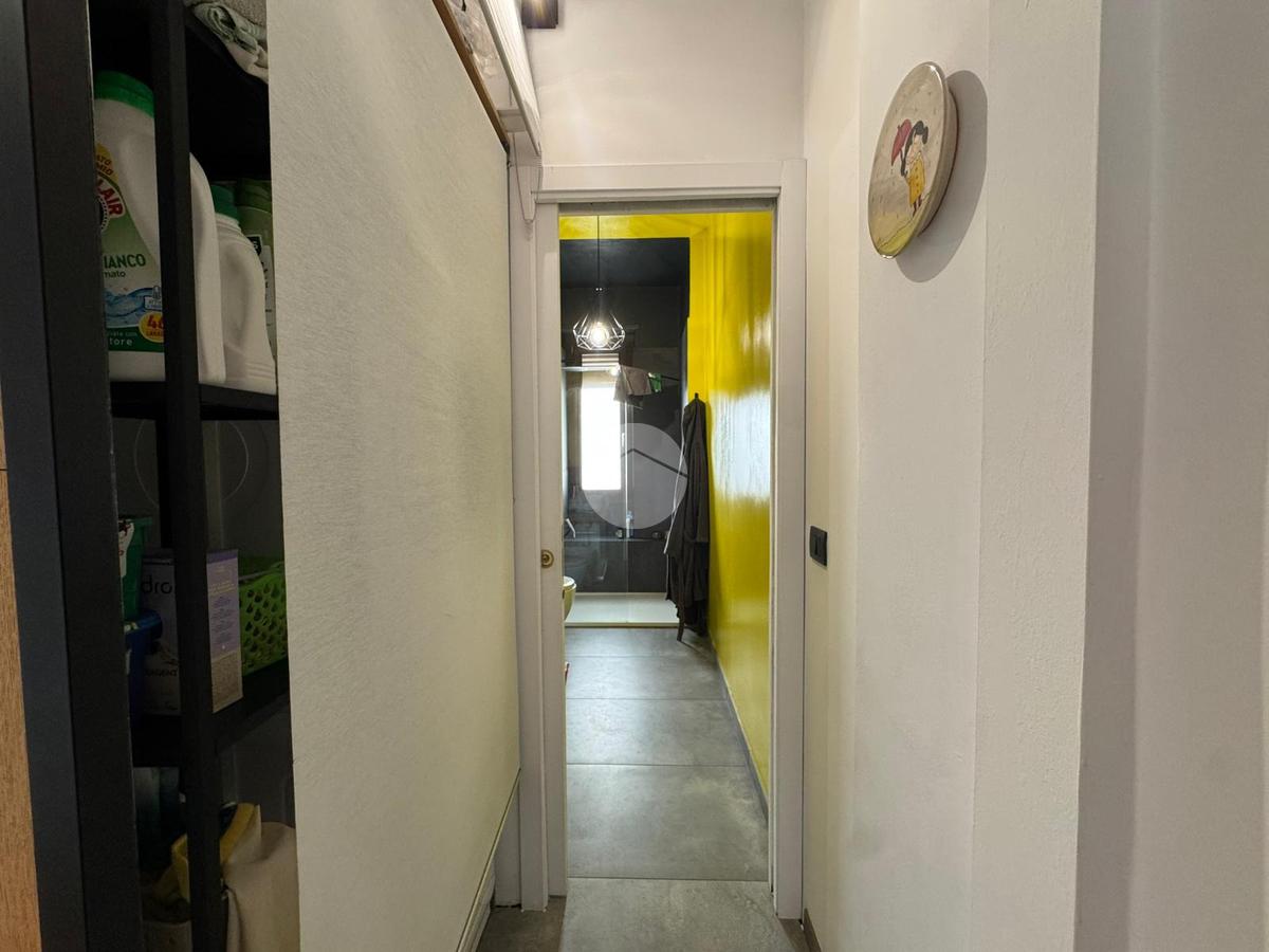 L'immobile si apre su un'accogliente zona living con soggiorno e angolo cottura. Da qui si accede al primo balcone, un vero spazio di servizio intelligente dotato di lavandino e vano tecnico per la caldaia a condensazione (installata nel 2022).