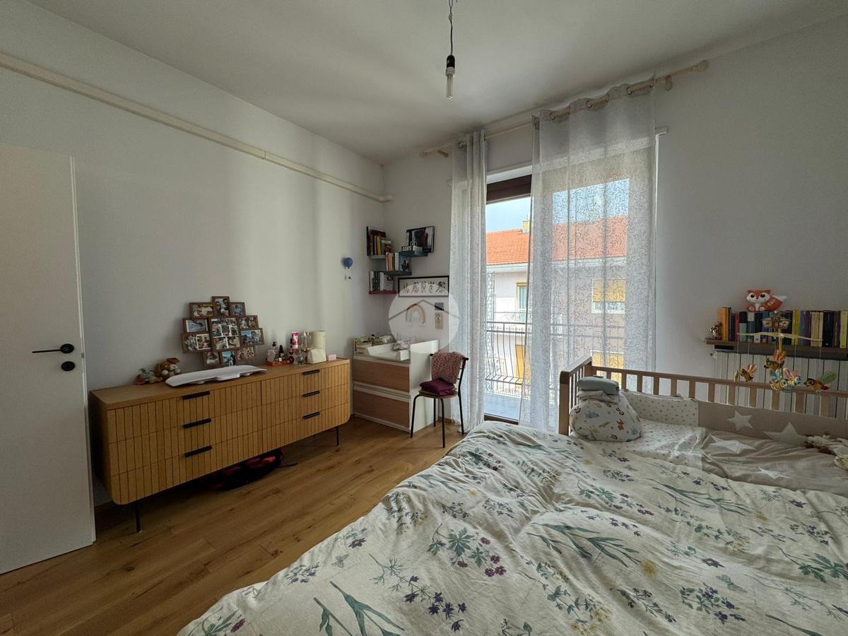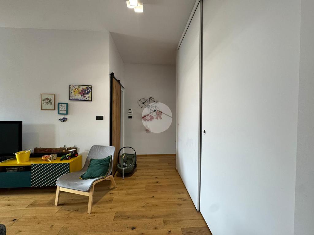L'appartamento è dotato di infissi in PVC effetto legno con doppio vetro, zanzariere su ogni finestra, porta blindata e impianto di climatizzazione con pompa di calore.