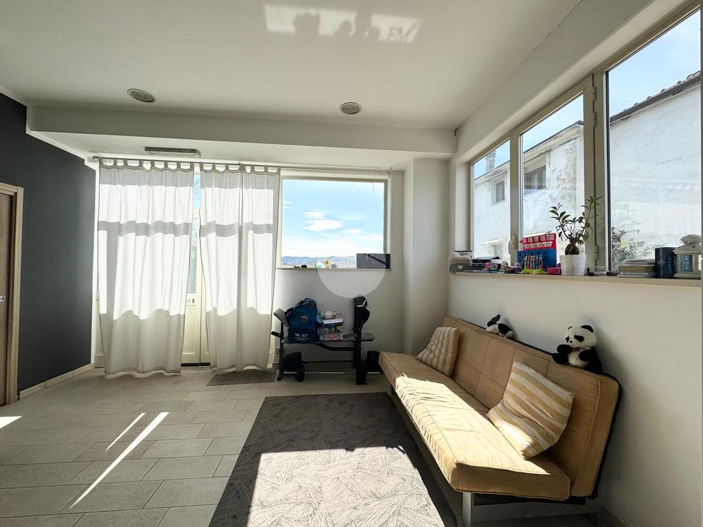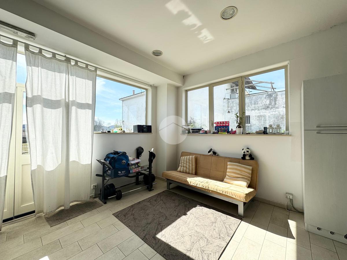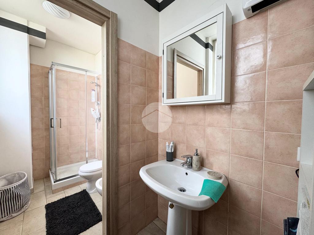 L'immobile offre una distribuzione degli spazi semplice e razionale. L'ingresso apre direttamente su una luminosa zona giorno con cucina a vista, ideale per chi cerca un ambiente moderno e accogliente. Un disimpegno, che funge anche da antibagno, conduce alla zona notte dove troviamo una spaziosa camera da letto matrimoniale e il bagno finestrato, completo di box doccia.
